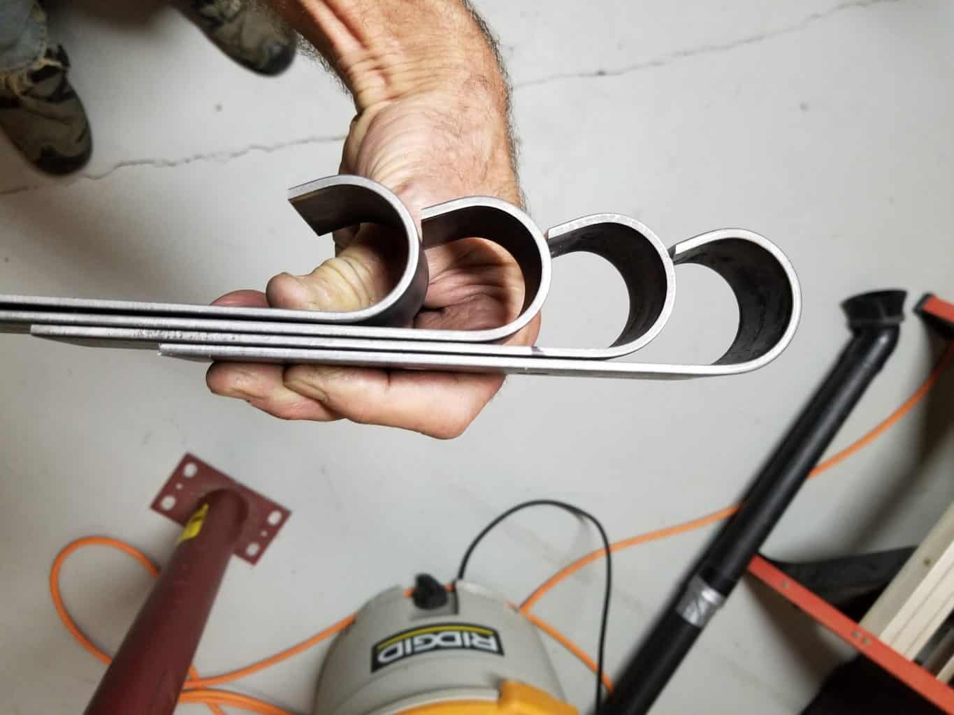 Bending a Tight Radius. Here is a good tool and die setup for the #MetalBender. Let the square block “pull” the strap around the round die… They never seem to have proper plumbing pipe brackets in the store. Making your own is easy with a cheap metal bender. 1″ NPT Black Pipe brackets using 1/8″ thick 1-1/2 ” metal strapping.