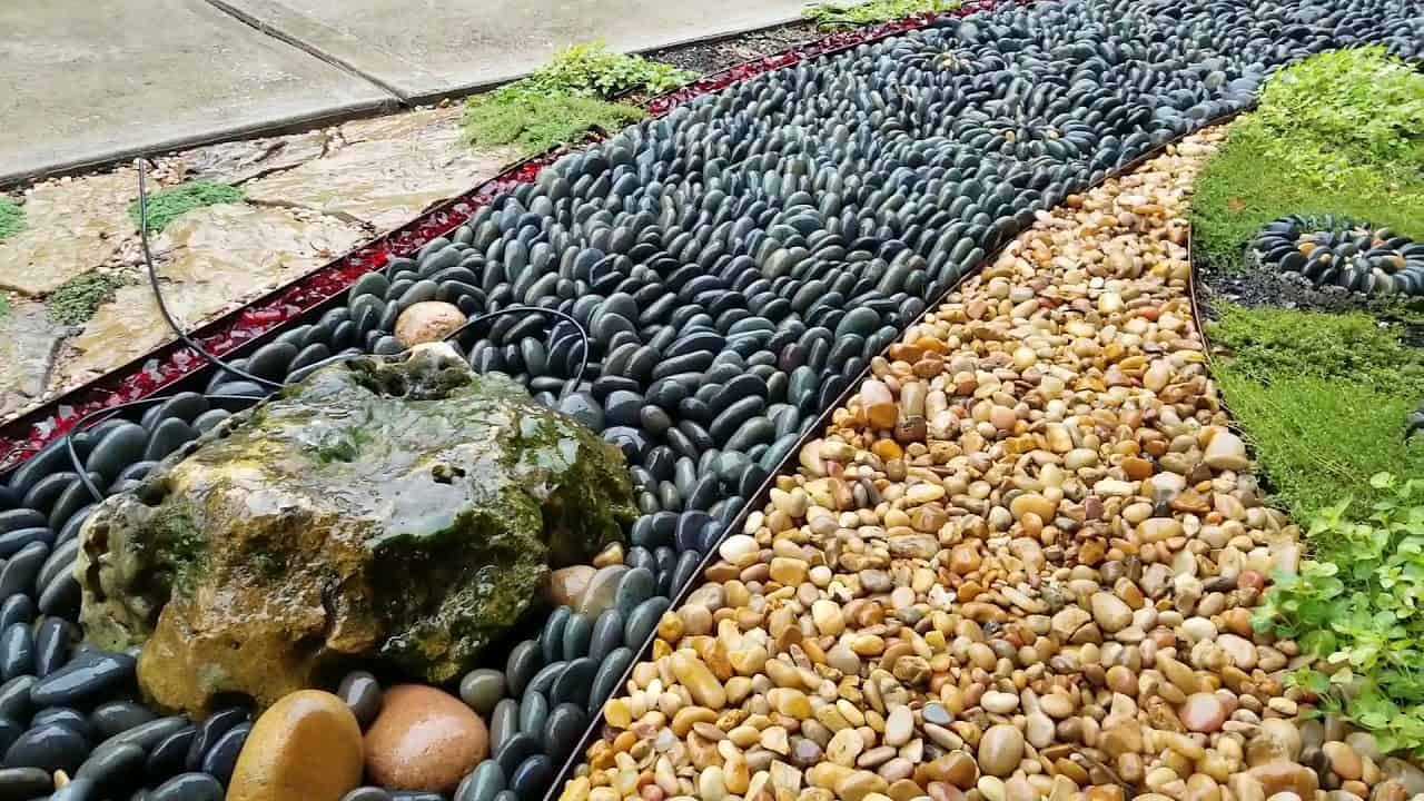 Rock Garden designed and built by my wife and me. Her design, where she individually laid #MexicanRiverRock to replicate a flowing river. She also dug the hole and installed a #DisappearingFountain For my part: #Welding #MetalForming #Landscaping Red #LandscapeGlass  #GlassRock as an accent #FlagStone I added an #ArchitecturalMetalPanel to anchor the end.