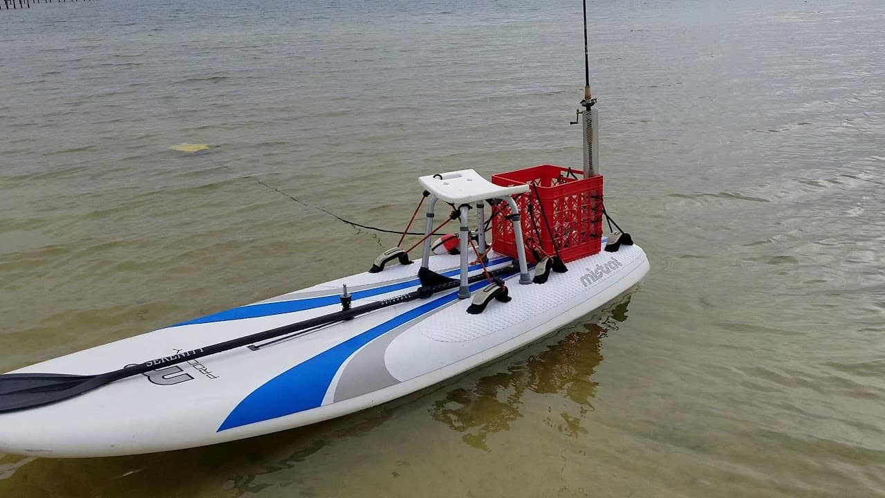 My adjustable shower stool is my go to tool for many projects. It’s waterproof, rust proof, lightweight. Muuuuuch easier on the back than bending over or kneeling while you work. Also works great to convert your #SUP to an efficient fishing machine. #FishingBoat